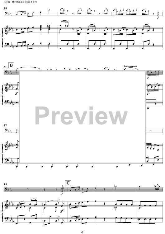 "Divertimento" Sheet Music by Franz Joseph Haydn
