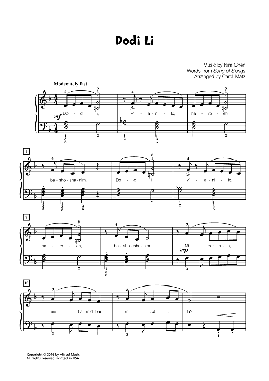 Digital Sheet Music for Dodi Li by Carol Matz, Nira Chen scored for Piano; id:461313