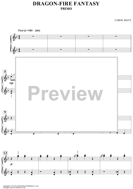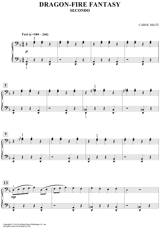 Digital Sheet Music for Dragon-Fire Fantasy by Carol Matz scored for 1 Piano, 4 Hands; id:456846