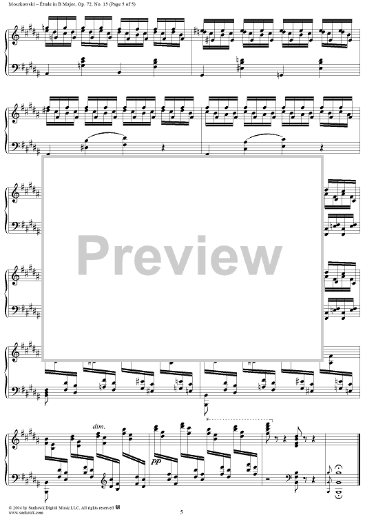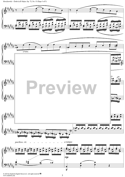 Digital Sheet Music for Etude in B Major, Op. 72, No. 15 by Moritz Moszkowski scored for Piano Solo; id:296740