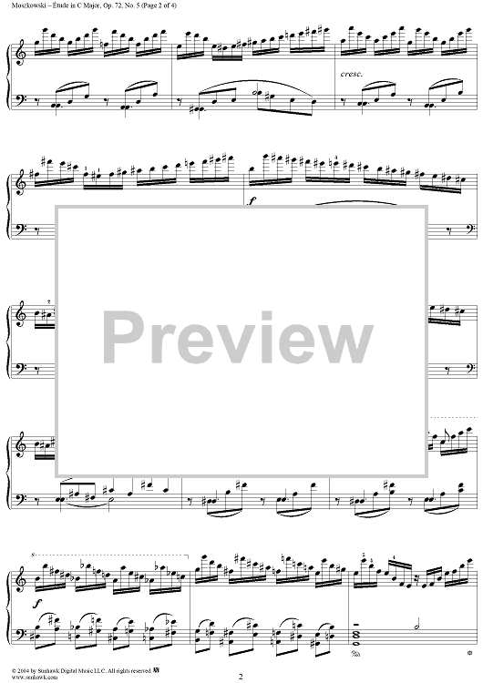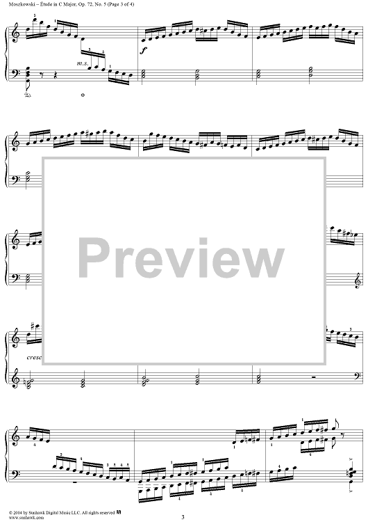 Digital Sheet Music for Etude in C Major, Op. 72, No. 5 by Moritz Moszkowski scored for Piano Solo; id:296730