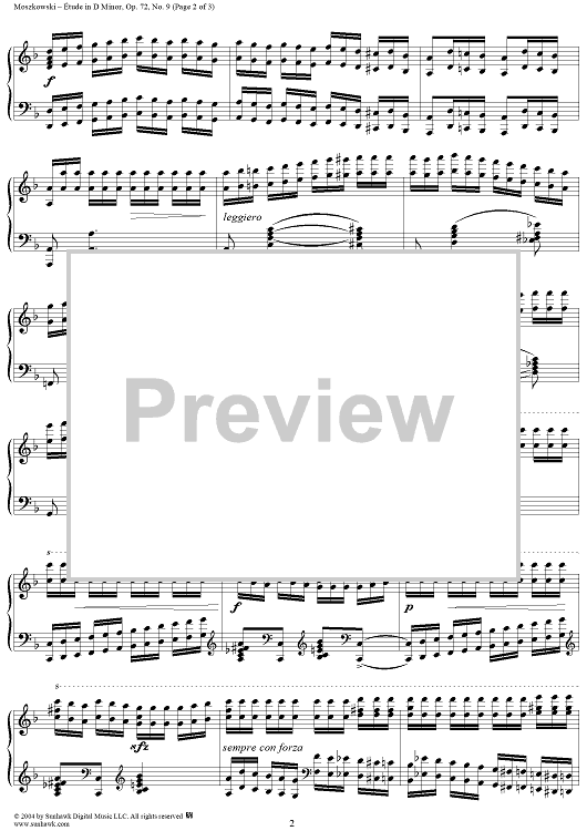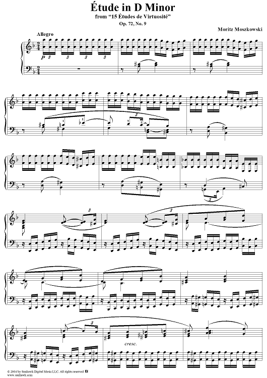 Digital Sheet Music for Etude in D Minor, Op. 72, No. 9 by Moritz Moszkowski scored for Piano Solo; id:296734