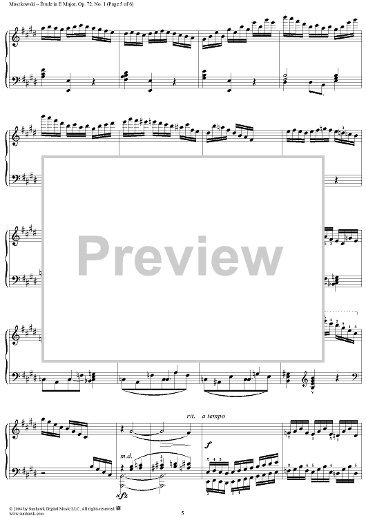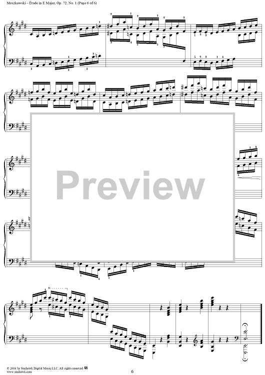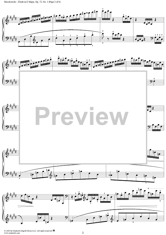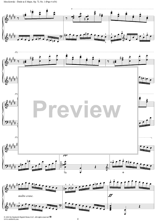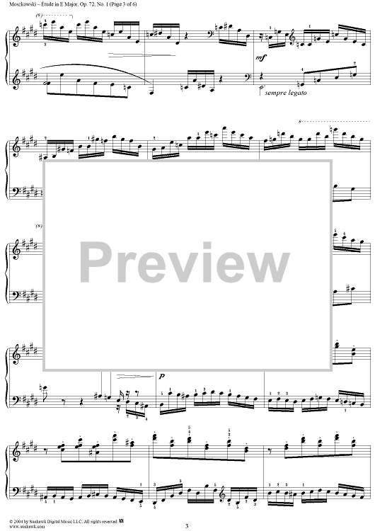 Digital Sheet Music for Etude in E Major, Op. 72, No. 1 by Moritz Moszkowski scored for Piano Solo; id:296726