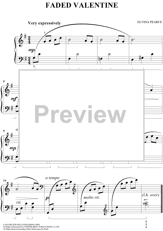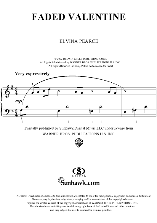 Digital Sheet Music for Faded Valentine by Elvina Pearce scored for Easy Piano; id:287201