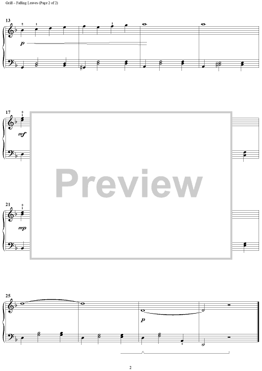 Digital Sheet Music for Falling Leaves by Joyce Grill scored for Easy Piano; id:287281