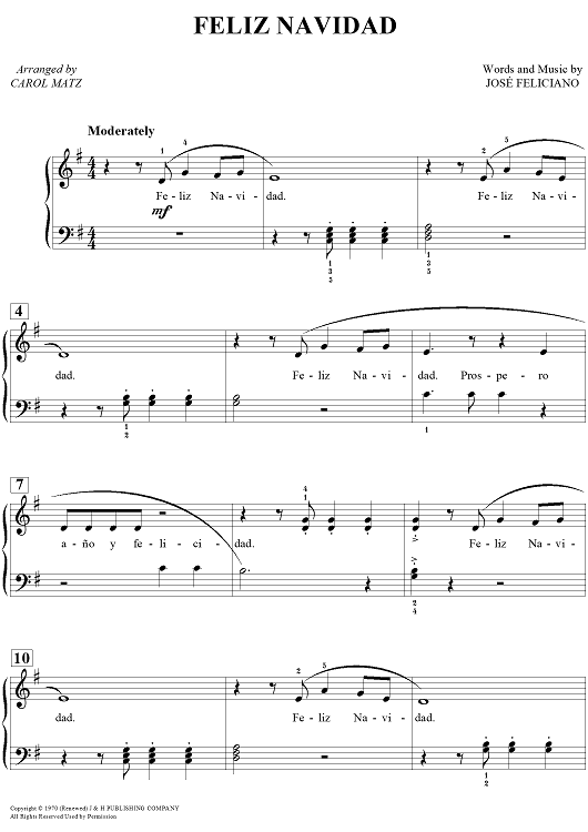 Digital Sheet Music for Feliz Navidad by Jose Feliciano, Carol Matz scored for Piano; id:453437