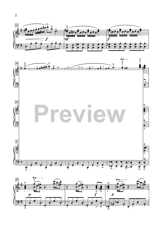 Fingers will truly fly in this fast and precise toccata-like solo. The left hand features eighth-note ostinato figures while the right hand melody consists mainly of sixteenth notes. The melody offers opportunities for analyzing scales in different keys and chords in root position and first inversion. The piece is written in E minor but uses many accidentals. The rhythmic vitality in 4/4 meter and the energetic style of this solo will make it a favorite of audiences and students alike.