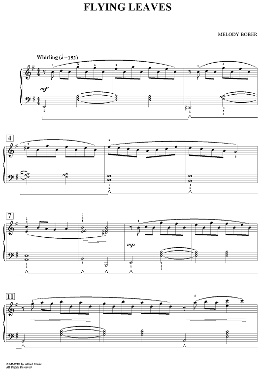 Digital Sheet Music for Flying Leaves by Melody Bober scored for Piano; id:456507
