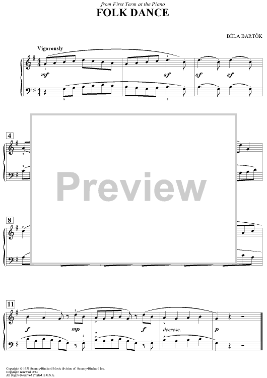 "Folk Dance - from First Term at the Piano" Sheet Music by Bela Bartok