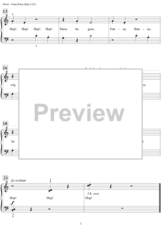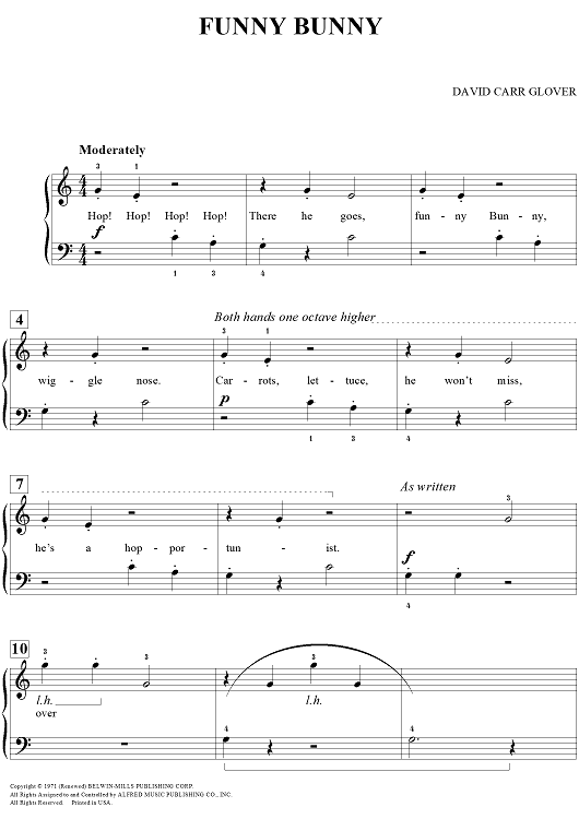 Digital Sheet Music for Funny Bunny by David Carr Glover scored for Easy Piano/Vocal; id:449664