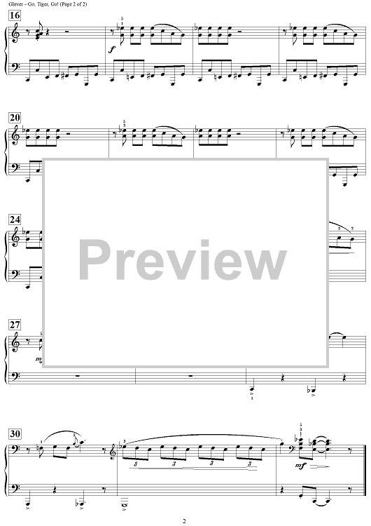 Digital Sheet Music for Go, Tiger, Go! by David Carr Glover scored for Piano Solo; id:449340