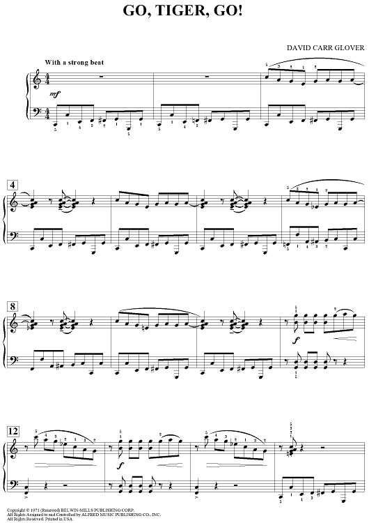 "Go, Tiger, Go!" Sheet Music by David Carr Glover