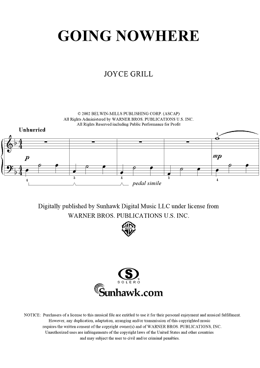 Digital Sheet Music for Going Nowhere by Joyce Grill scored for Easy Piano; id:287270