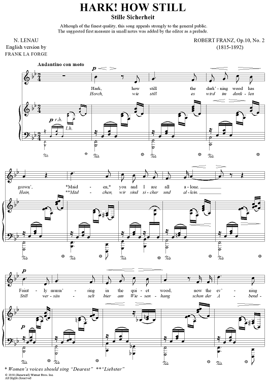 "Hark! How Still (Stille Sicherheit)" Sheet Music by Robert Franz
