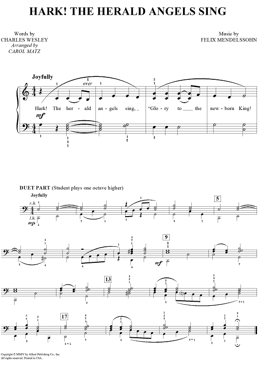 Digital Sheet Music for Hark! The Herald Angels Sing by Felix Mendelssohn, Charles Wesley, Carol Matz scored for Piano; id:453918