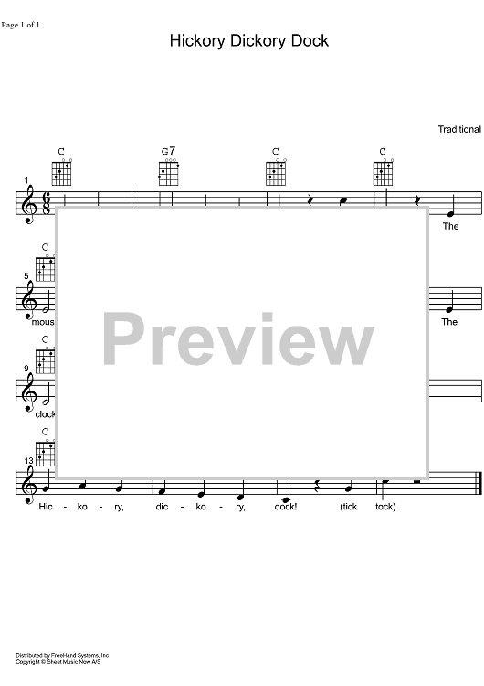 Digital Sheet Music for Hickory Dickory Dock by SMN Archive Collection, Traditional scored for Lead Sheet; id:325202