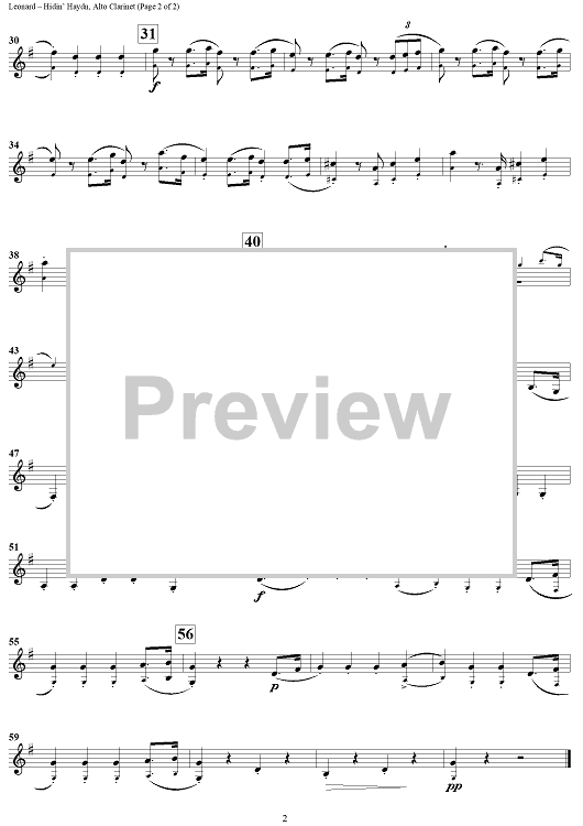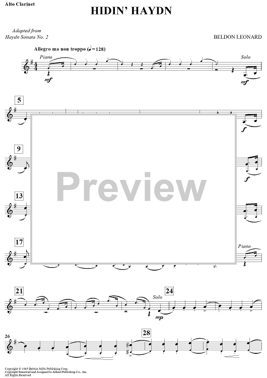 Digital Sheet Music for Hidin' Haydn - Adapted from Haydn Sonata No. 2 by Beldon Leonard scored for Eb Alto Clarinet/Piano; id:439429
