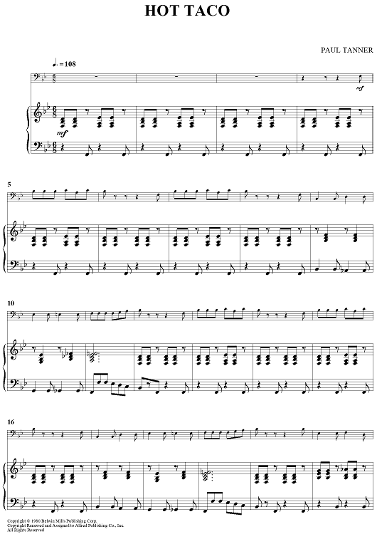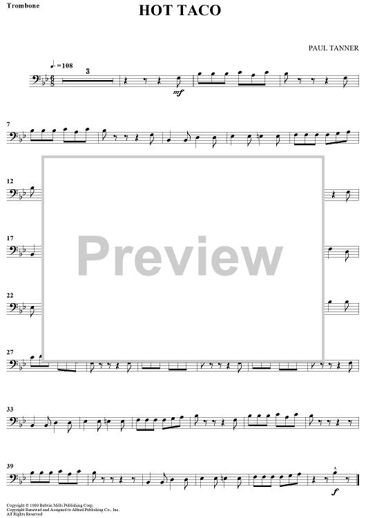 Digital Sheet Music for Hot Taco by Paul Tanner scored for Trombone/Piano; id:437429