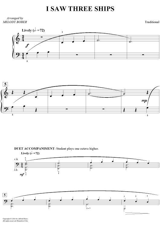 Digital Sheet Music for I Saw Three Ships by Traditional, Melody Bober scored for Piano; id:459863