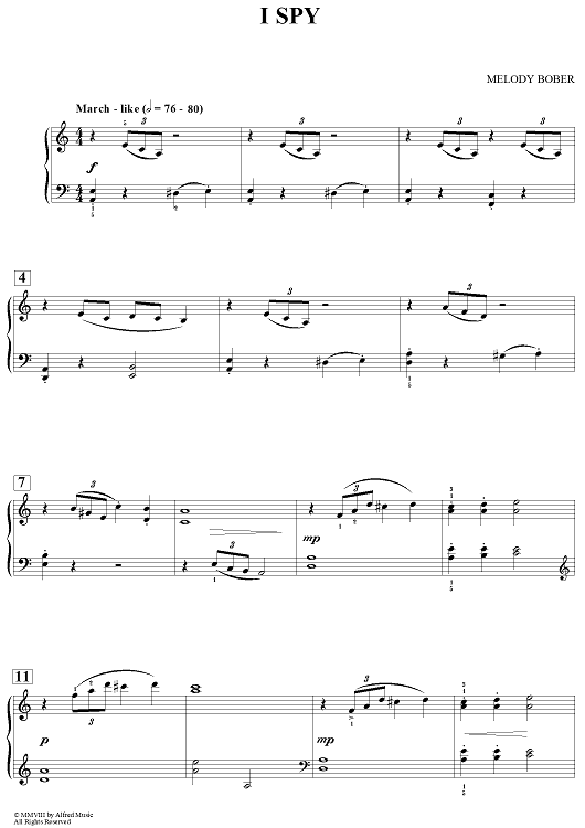 Digital Sheet Music for I SPY by Melody Bober scored for Piano; id:456485
