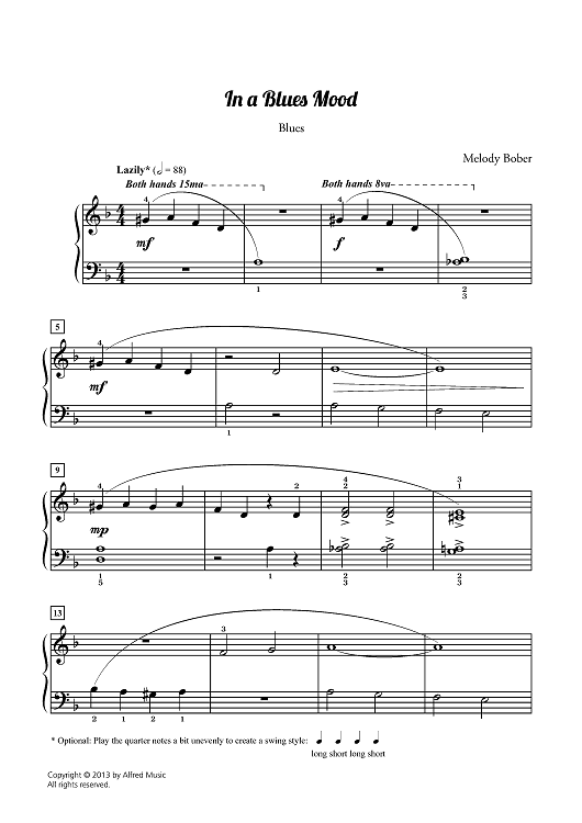 Digital Sheet Music for In a Blues Mood (Blues) by Melody Bober scored for Piano; id:461850