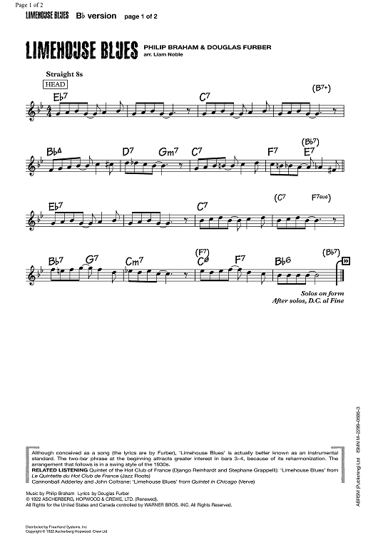 Digital Sheet Music for Limehouse Blues by , Philip Braham, Douglas Furber, Liam Noble scored for B-flat Lead Sheet; id:355617