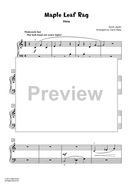 Digital Sheet Music for Maple Leaf Rag by Scott Joplin, Carol Matz scored for 1 Piano, 4 Hands; id:451447