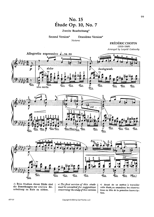 Digital Sheet Music for No. 15 - Étude Op. 10, No. 7 (Second Version) by Frederic Chopin, Leopold Godowsky scored for Piano Solo; id:438365