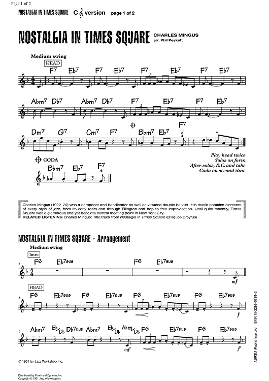 Digital Sheet Music for Nostalgia in Times Square - C Instruments by Charles Mingus, Phil Peskett scored for Lead Sheet; id:355457