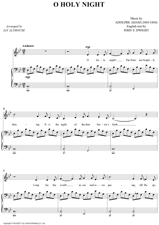 Digital Sheet Music for O Holy Night by John Sullivan Dwight, Jay Althouse, Adolphe Adam scored for Piano/Vocal; id:441285