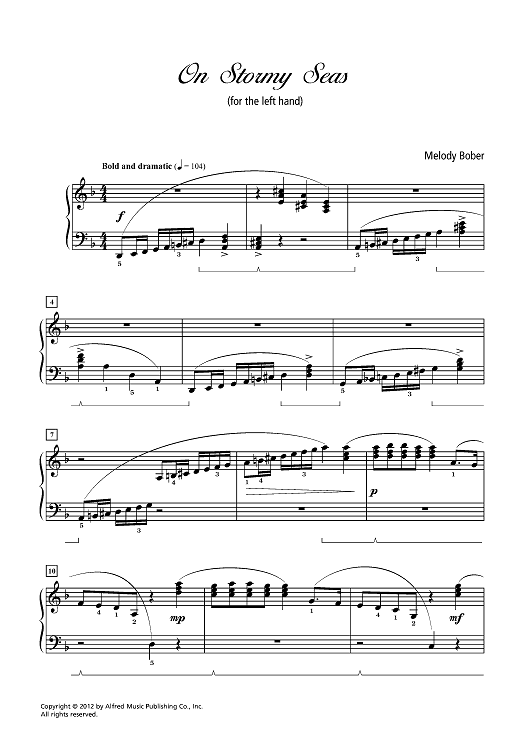 "On Stormy Seas (for the left hand)" Sheet Music by Melody Bober
