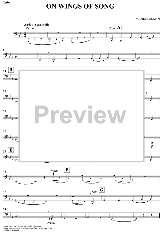 Digital Sheet Music for On Wings Of Song by Felix Mendelssohn scored for Tuba/Piano; id:438959