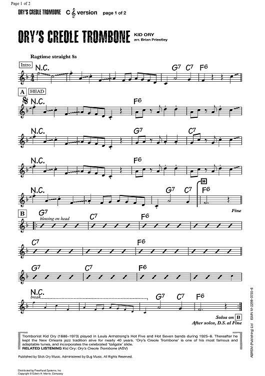 "Ory's Creole Trombone - C Instruments" Sheet Music by Edward Ory