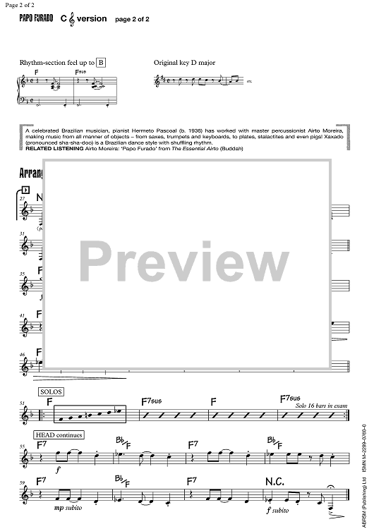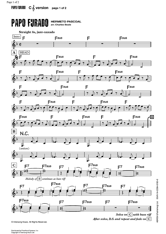 Digital Sheet Music for Papo Furado - C Instruments by Charles Beale, Hermeto Pascoal scored for Lead Sheet; id:355459