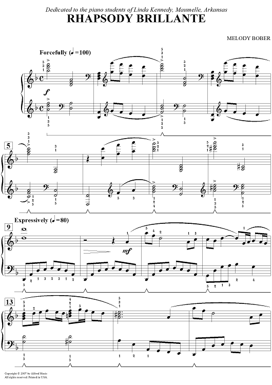 "Rhapsody Brillante" Sheet Music by Melody Bober
