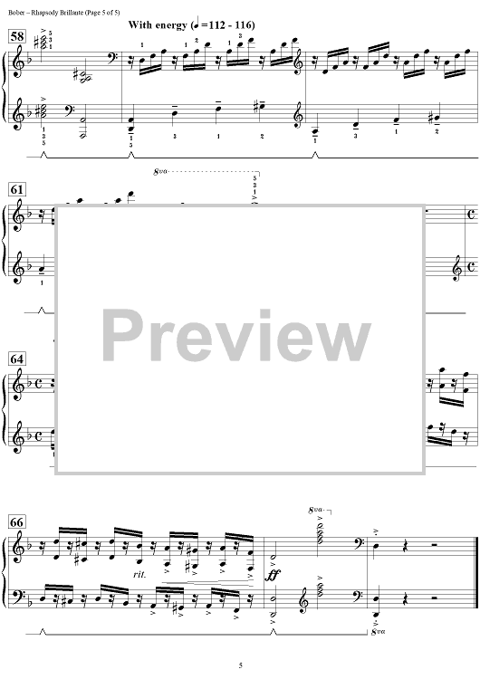 Digital Sheet Music for Rhapsody Brillante by Melody Bober scored for Piano; id:460361