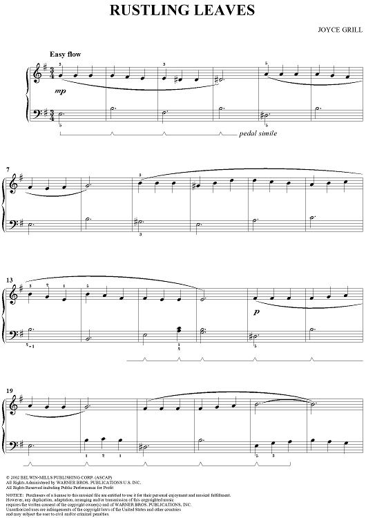 Digital Sheet Music for Rustling Leaves by Joyce Grill scored for Easy Piano; id:287280