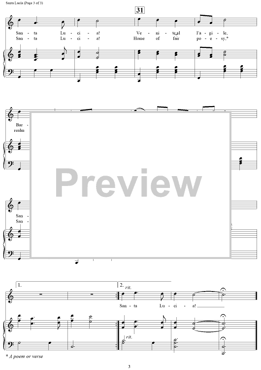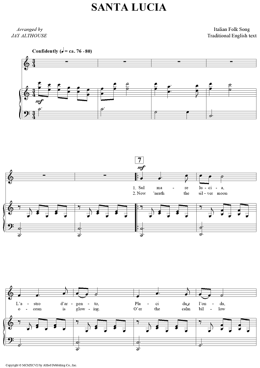 Digital Sheet Music for Santa Lucia by Jay Althouse, Italian Folk Song scored for Piano/Vocal; id:459101
