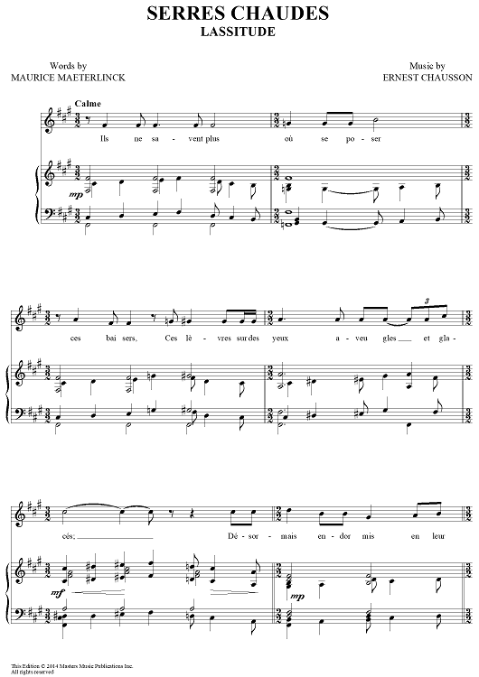 Digital Sheet Music for Serres Chaudes - Lassitude by Ernest Chausson, Maurice Maeterlinck scored for Piano/Vocal; id:444365
