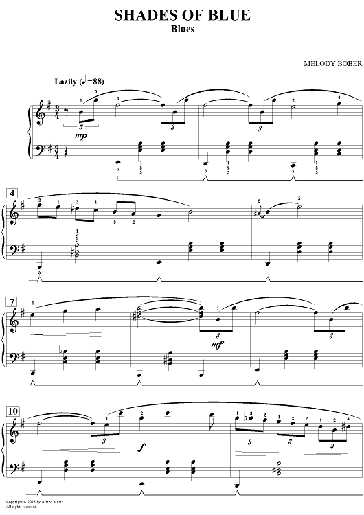 Digital Sheet Music for Shades Of Blue (Blues) by Melody Bober scored for Piano; id:463411