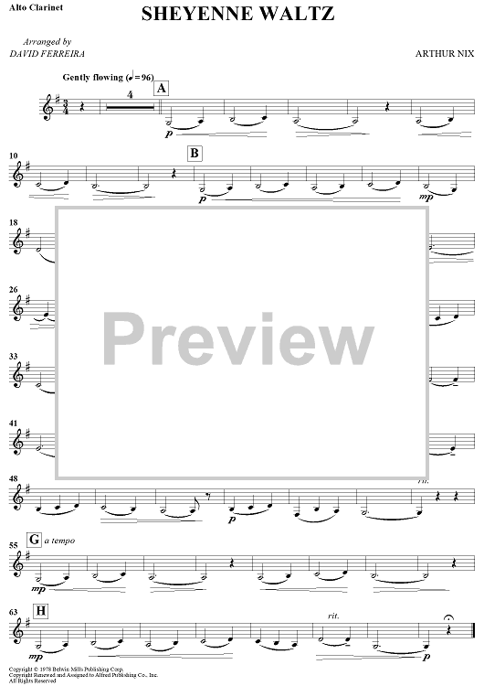 Digital Sheet Music for Sheyenne Waltz by Arthur Nix, David Ferreira scored for Eb Alto Clarinet/Piano; id:437915