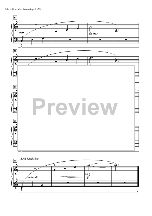 "Silver Moonbeams" Sheet Music by Martha Mier
