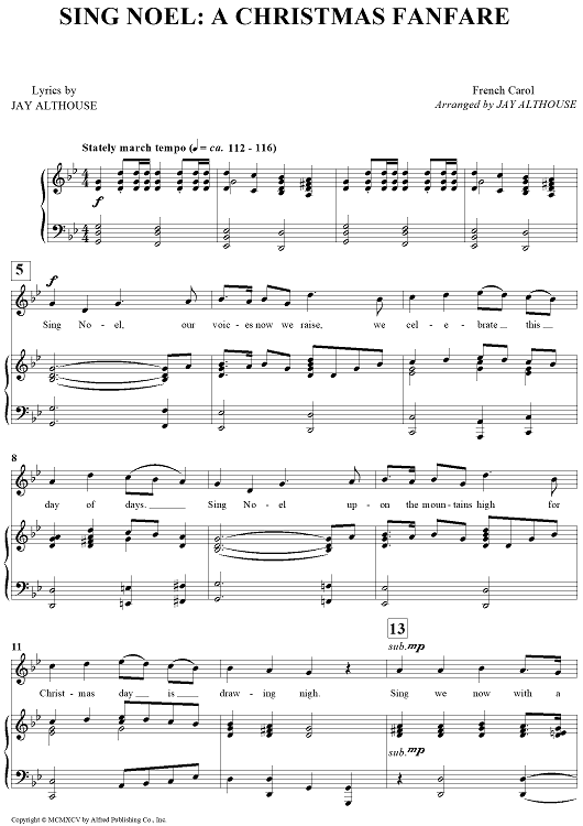 Digital Sheet Music for Sing Noel: A Christmas Fanfare by French Carol, Jay Althouse scored for Piano/Vocal; id:441002