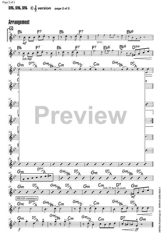"Sing, Sing, Sing - C Instruments" Sheet Music by Benny Goodman