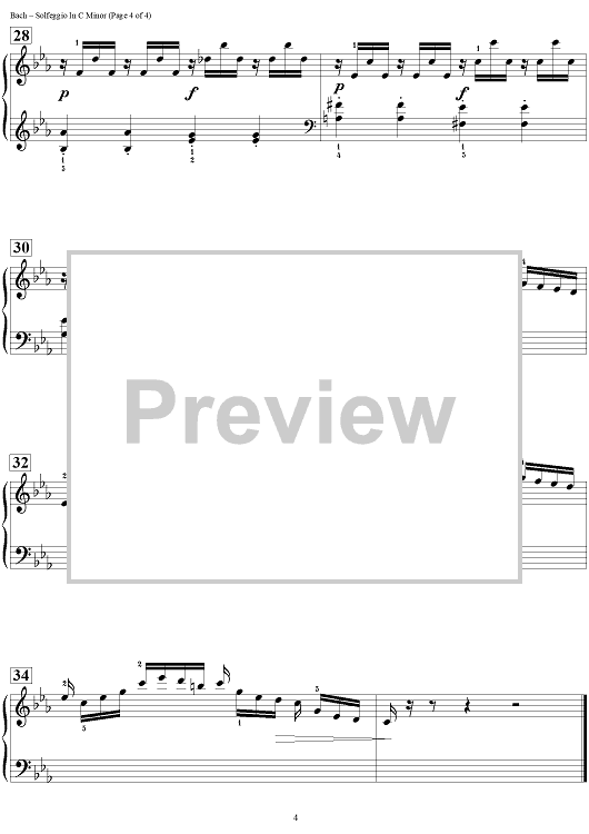 Digital Sheet Music for Solfeggio In C Minor (Baroque) by Carl Philipp Emanuel Bach, Melody Bober scored for Piano; id:463391