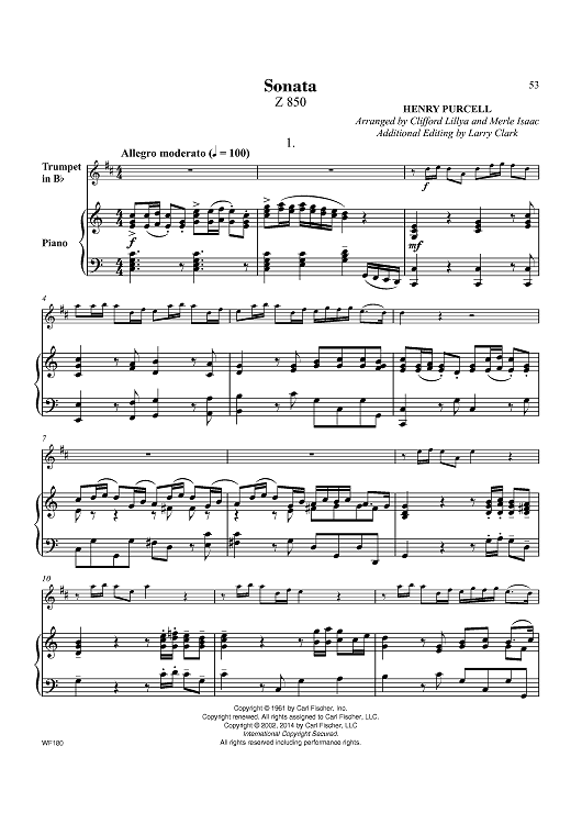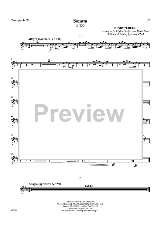 Digital Sheet Music for Sonata - Z 850 by Henry Purcell, Merle J. Isaac, Clifford Lillya scored for Bb Trumpet/Piano; id:451724