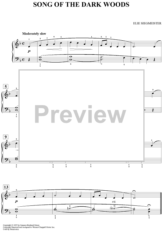 "Song Of The Dark Woods" Sheet Music by Elie Siegmeister