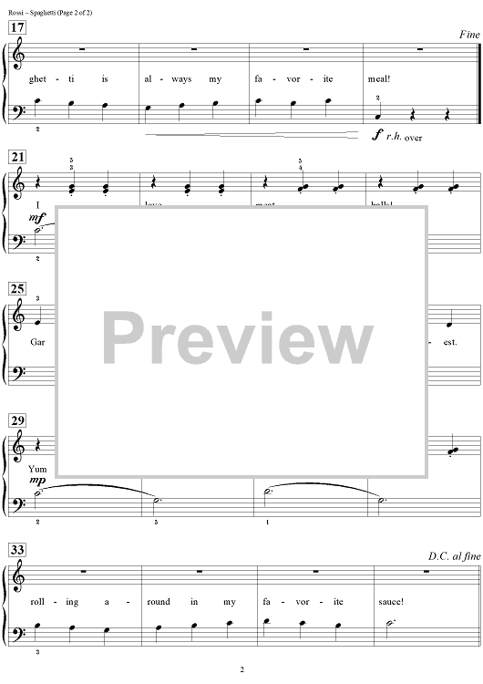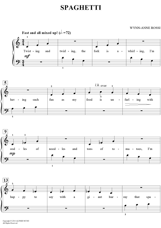 Digital Sheet Music for Spaghetti by Wynn-Anne Rossi scored for Easy Piano/Vocal; id:449508