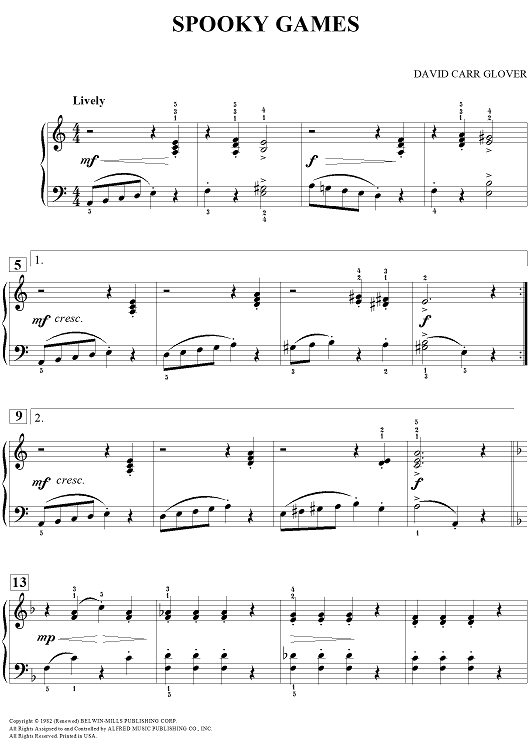 "Spooky Games" Sheet Music by David Carr Glover