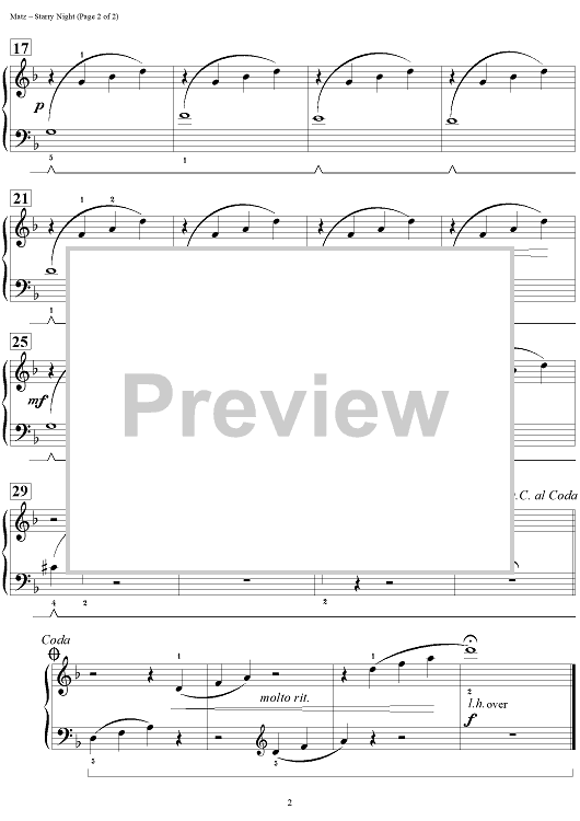 Digital Sheet Music for Starry Night by Carol Matz scored for Piano; id:454051
